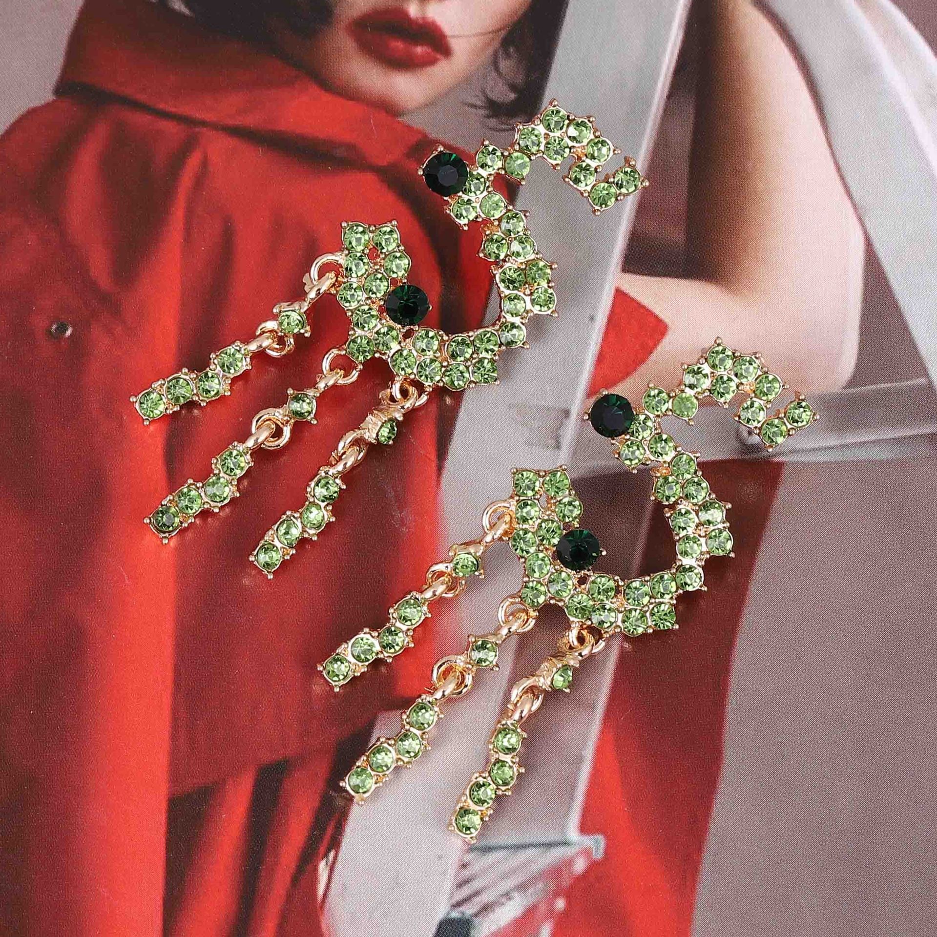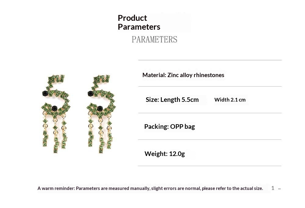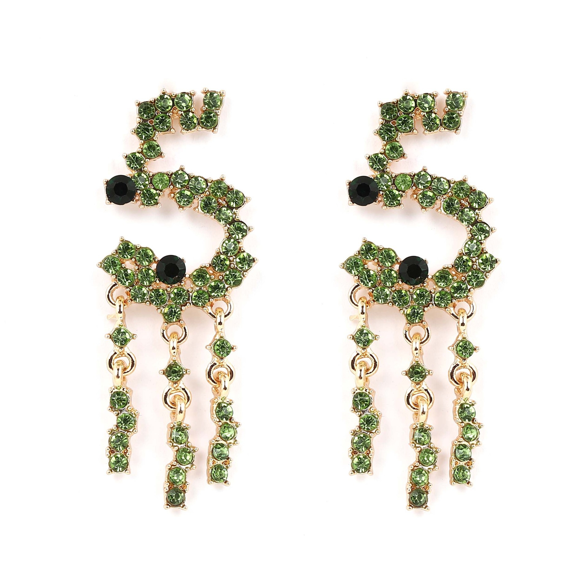Alloy Stud Earrings With Diamond-encrusted Numerals And Tassel Detailing