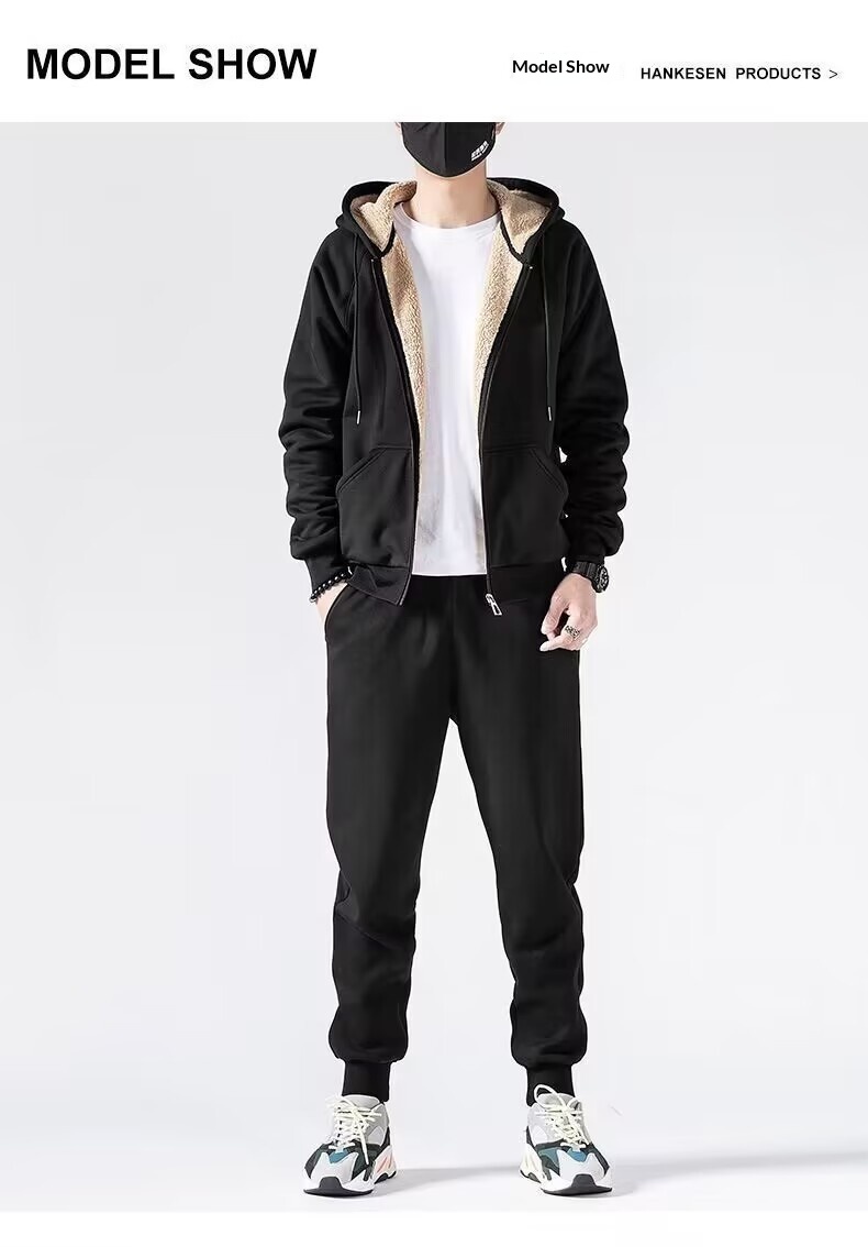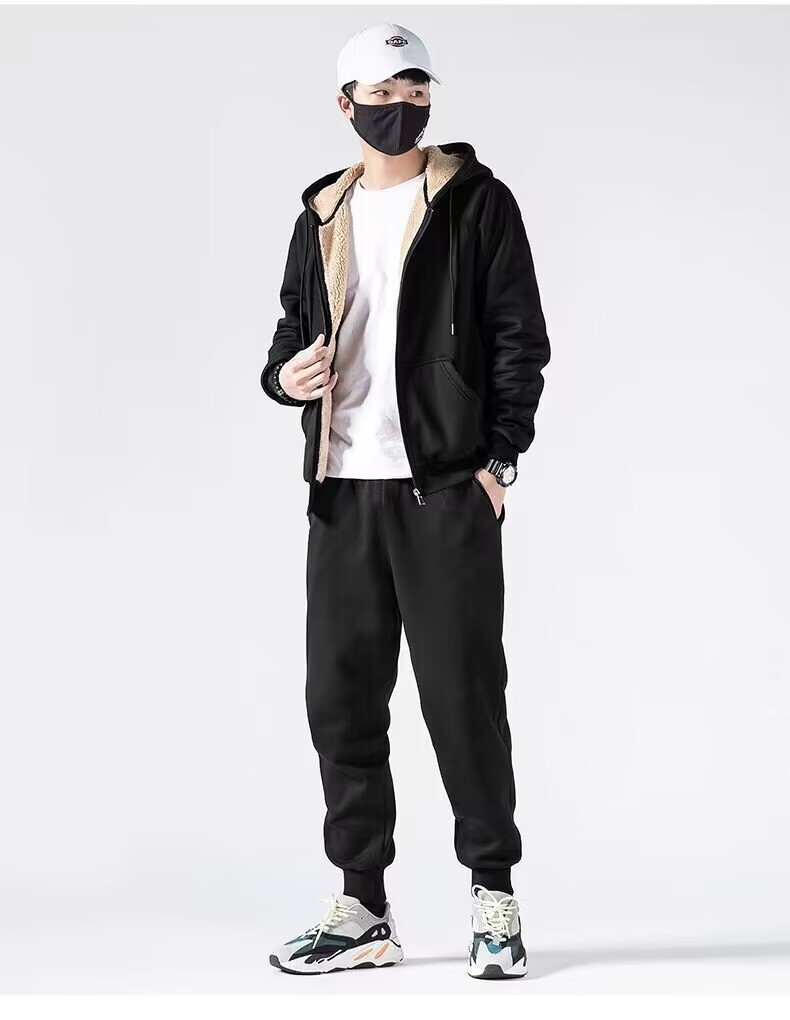 Fleece-lined Extra-thick Trendy Corduroy Lambswool Sportswear Set