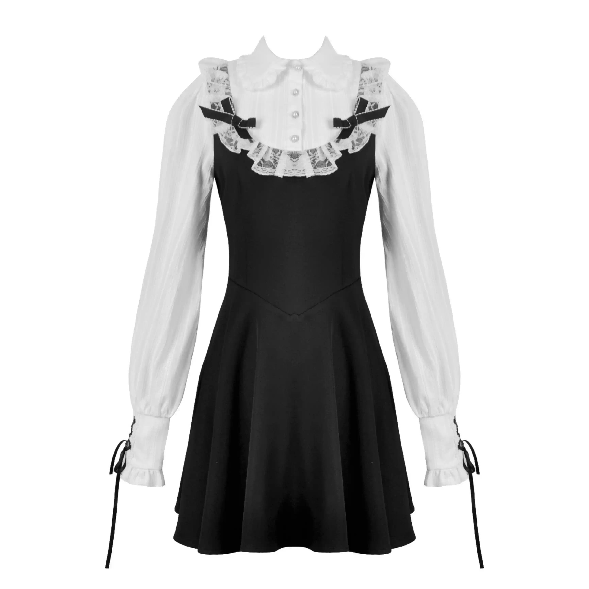 Gothic Dark Cute Lace Black And White Long-sleeved Dress