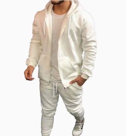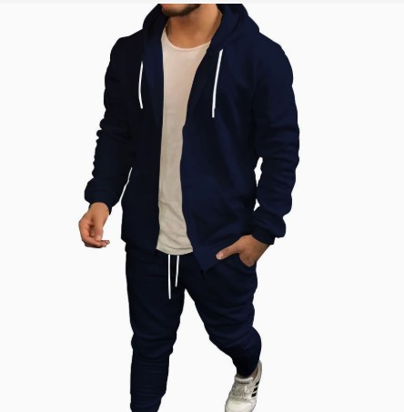 Mens Fashion Solid-Color Casual Hooded Cardigan Set
